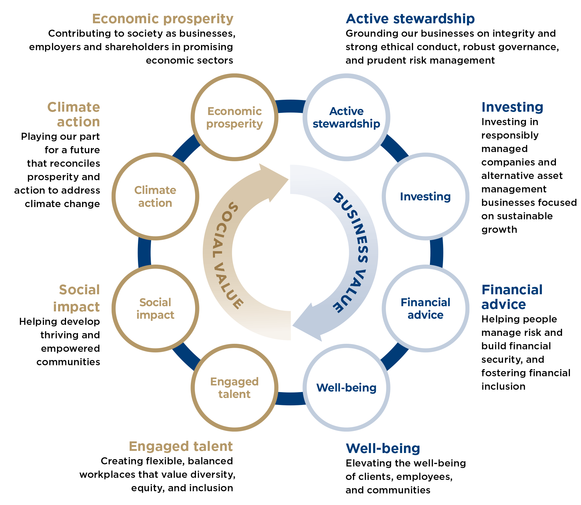 At Power Corporation, we firmly believe that for our business to prosper, so too must the societies within which we live and work. Employing diverse and talented people, and investing in high-quality and responsibly managed businesses, is helping us build and strengthen our business for the future, while enabling more sustainable outcomes for our people, communities and group companies' clients.