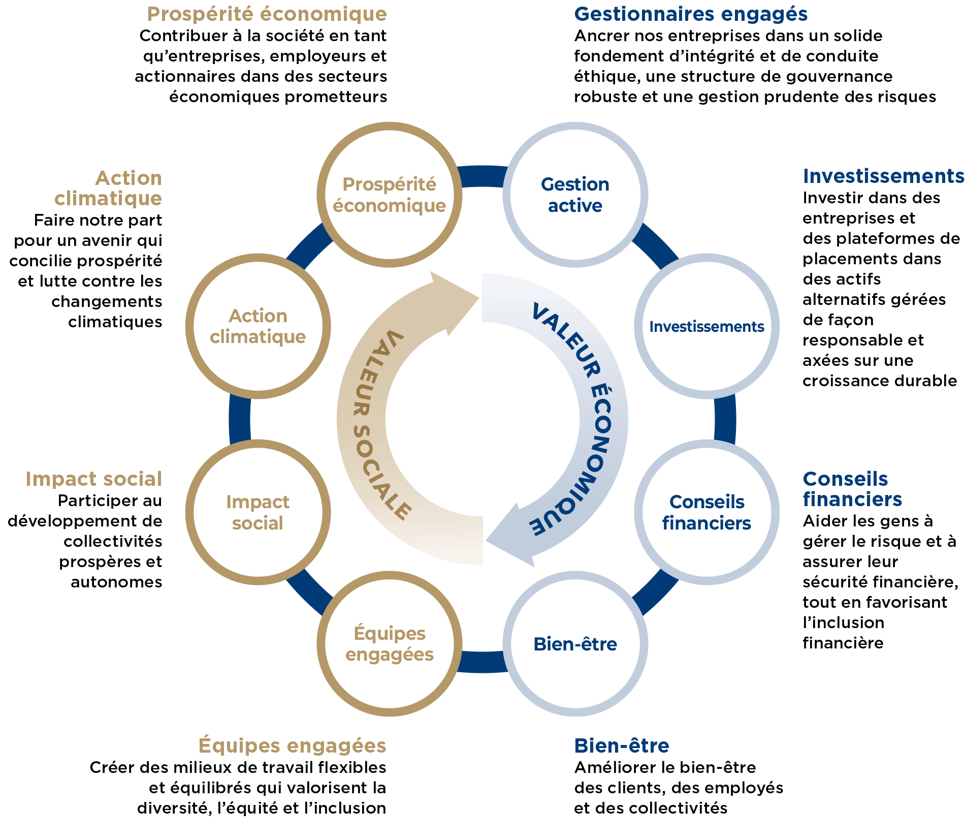Chez Power Corporation, nous croyons fermement que la prospérité de nos activités d’affaires est étroitement liée à celle de la société au sein de laquelle nous vivons et travaillons. Constituer un bassin diversifié d’employés talentueux et investir dans des sociétés de grande qualité et gérées de façon responsable nous aident à bâtir et à renforcer nos activités pour le futur, tout en générant des retombées à plus long terme pour nos employés, nos collectivités et les clients des sociétés de notre groupe.